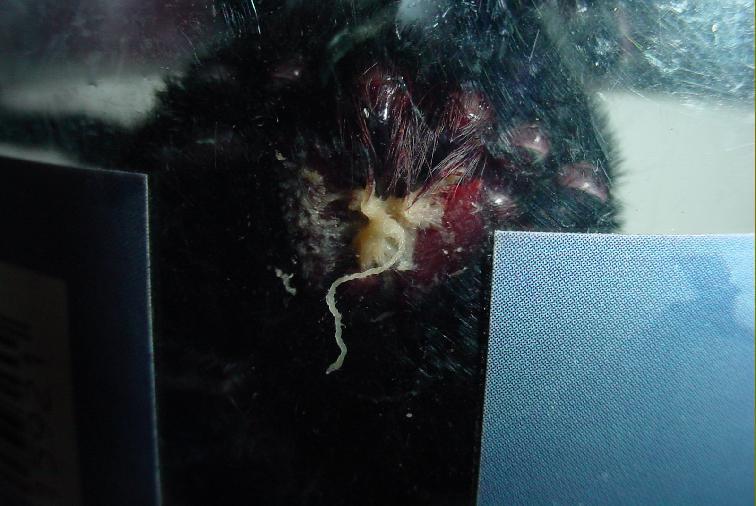 same symptoms. Now at the time there was a brief discussion on tarantula ailments on the internet arachnid mailing lists and this included problems with nematode worms. I'd heard of nematodes over