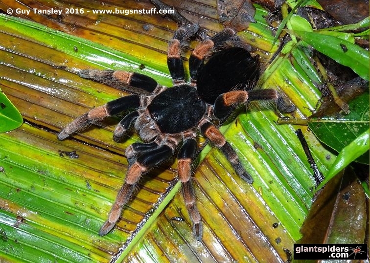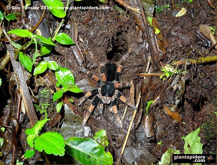 Megaphobema mesomelas: This is Costa Rica's most famous and attractive species. It is found in the high altitude cloud forests, and prefers much lower temperatures and very high humidity. Everyone that visits the Monteverde region will probably see this spider as it is a popular spider to show tourists, especially on night walks through forest reserves.