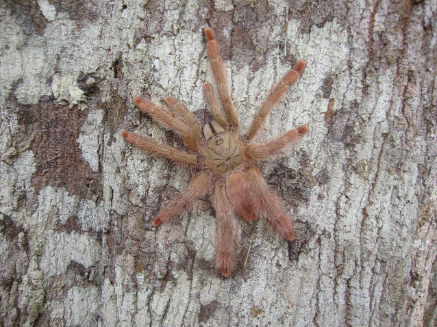 Day 11: We wasted no time in heading down to the tree where I found the Tapinauchenius the night before. After a failed tickle, I removed the debris that surrounded the retreat and we soon had the spider extracted.